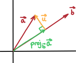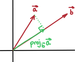 The projection of a vector on a second vector , denoted as , can be found through a dot product by means of the following formula.